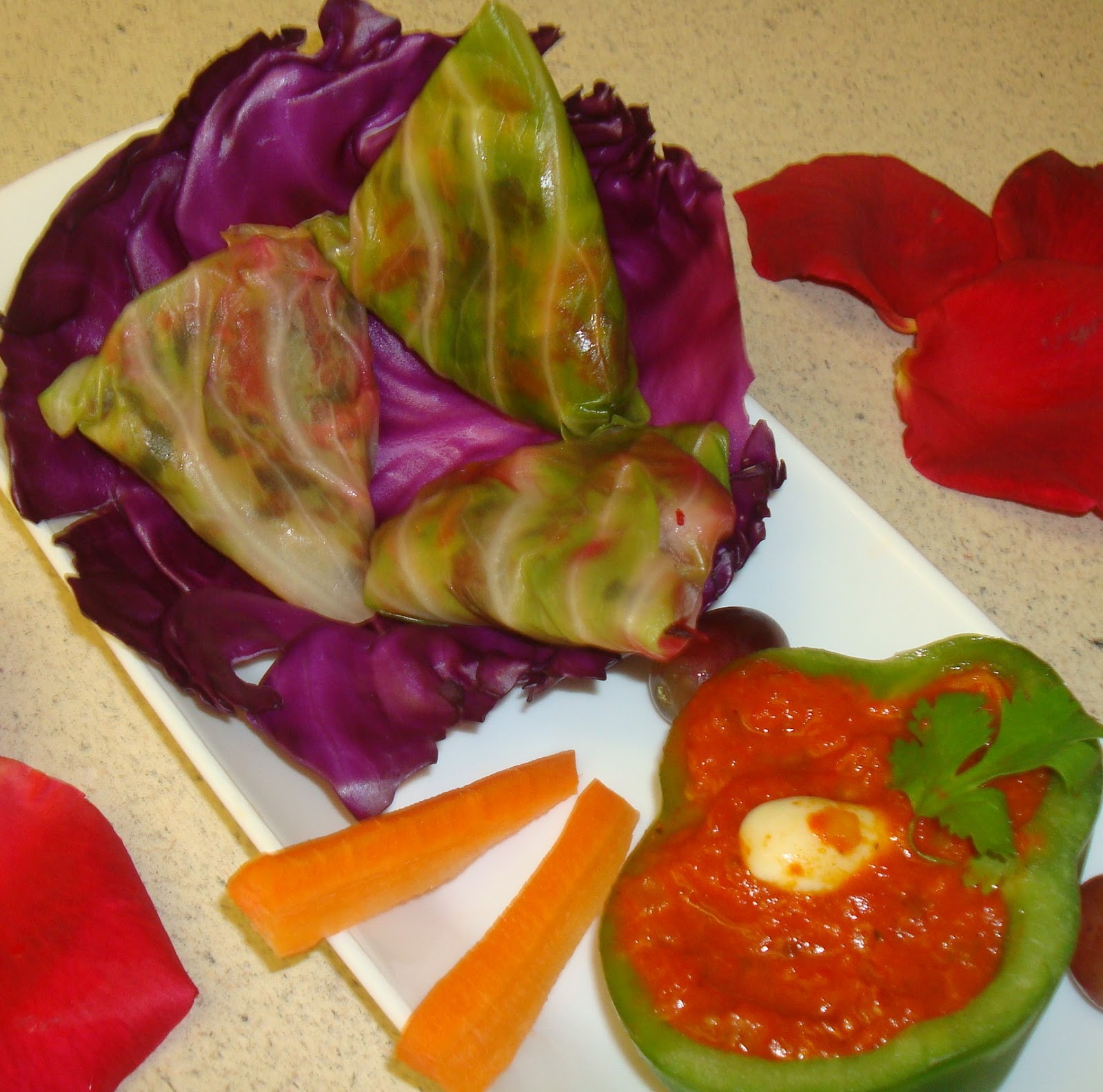 Now, here is the recipe which talks about cabbage samosa stuffed with salad which is not fried and baked but a healthy, delicious, colorful, and nutritious and has the same appeal of Samosas. Cabbage Samosas are made with cabbage leaves filled with salad. It is served with any tangy chutney, I would prefer chutney made from Red bell pepper.