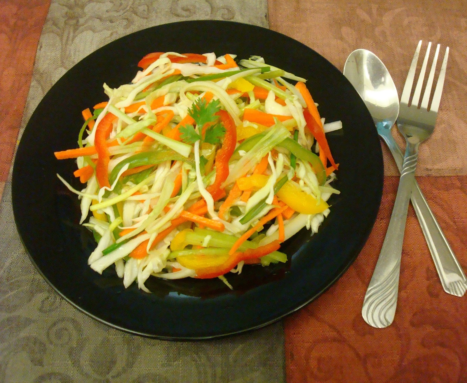 This is a simple, nutritious and fantastic salad to add to your summer meals. Combining the cabbage with carrots, capsicum, spring onions and celery made a colorful combination and crunchy Chinese vegetable salad.