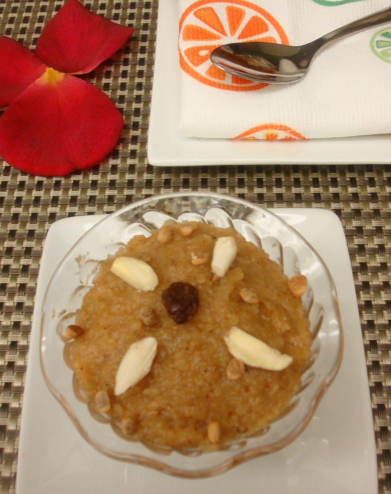 - Serve hot immediately or pour it in greased plate and let it cool down to set and cut halwa into desired shape and garnish.