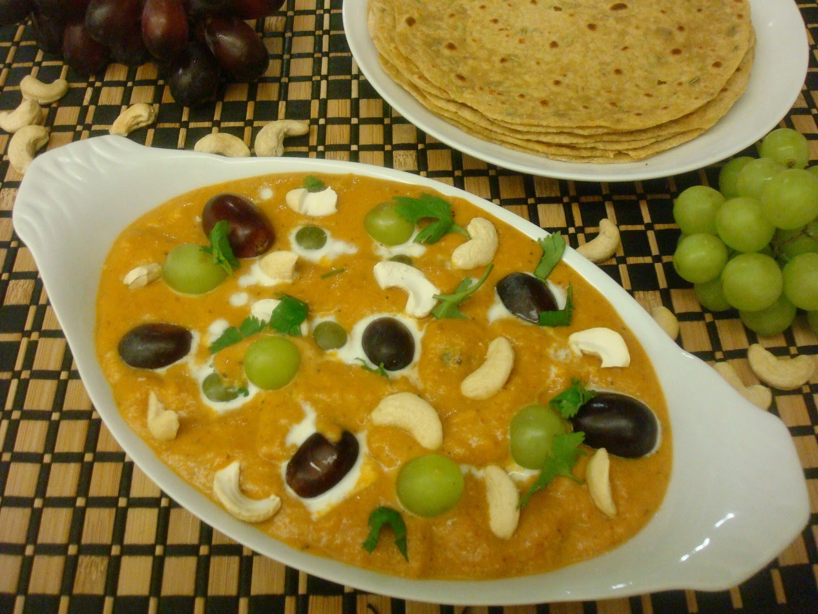 The Grapes Cashew nuts curry is made in Pineapple gravy. I enjoy this sweet and sour curry with theplas and parathas.