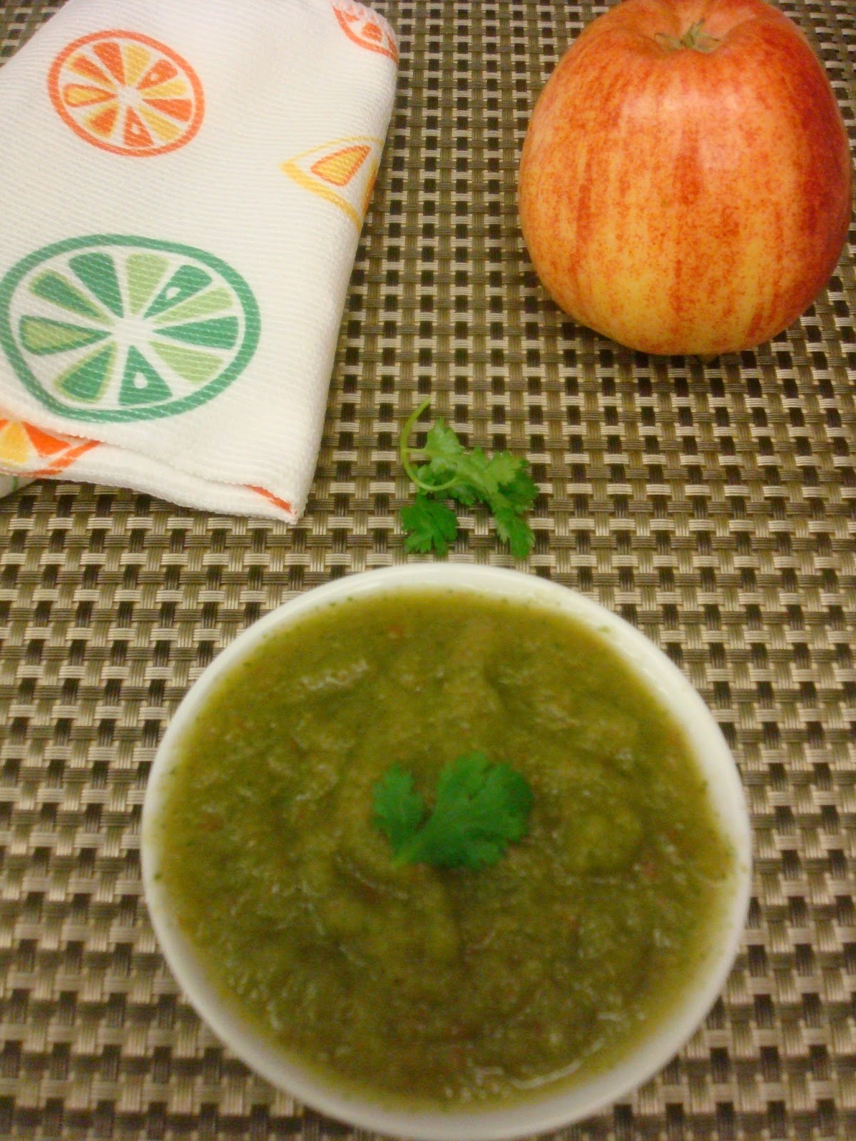 Quick and Easy-to-make, delicious apple mint Dip with chopped apples, mint, corindar, lemon and green chili.