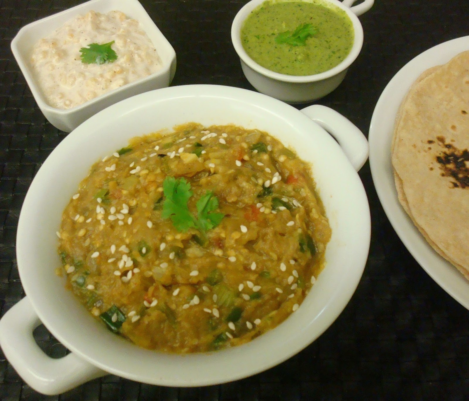 Baingan Bharta is an most popular Indian dish, which is also delicious and quite healthy and that is sure to stir up your taste buds. It is made by first roasting the eggplants until very soft. The charred skin is removed and cooked with Indian spices until thickened and richly flavored. It can be served with rotis / Indian bread or Rice.