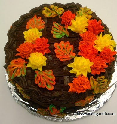 For flowers, fall leaves and pumpkin used buttercream frosting